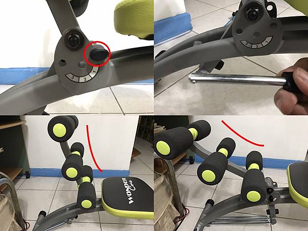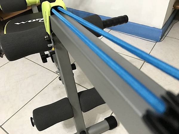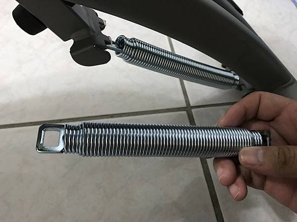 由於這個健身器還可以練腹部肌群,故在以椅背下設有彈簧設計,裝兩條彈簧的強度最低、其次為一條,最高強度就是不加彈簧,不加真的有點累人(廢到笑)。