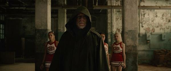 就在這次,女孩決定坦承跟老公講述小時候的陰影,但也來不及了,因為他們已經決定入侵,大家能想像如果一家孤身在外面旅行,在荒郊野外中卻有四個人站在門口許久,那是有多恐怖嗎?電影中不僅營造出這樣的恐怖,還讓他們穿上紅衣,真的十足嚇人,還沒入侵我就嚇到快尿了 (笑)。