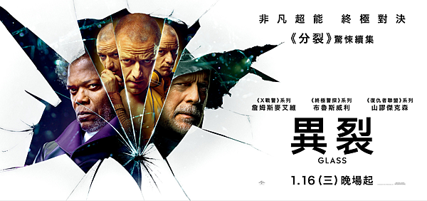 而片中的艾莉史特普博士專攻超人類心理研究,想要解開野獸與大衛的強大能力之謎,然而精神病院不只囚禁野獸與大衛,就連智商超乎常人的玻璃先生,也在院中接受治療,如果沒看過的人應該對這段是霧煞煞。簡單來說呢,右起:就是擁有大力氣的大衛,中間則是有著多重人格的野獸,最左邊則是智商超高的玻璃先生。
