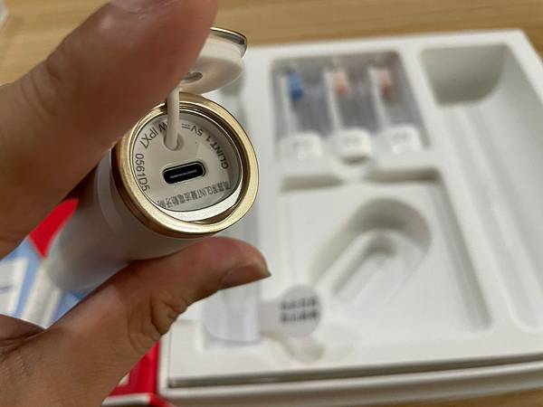 盒中內容物包含一個電動牙刷本體、三組刷頭(深潔兩組、煥白一組)、充電線、收納盒和說明書,從外觀來看還蠻精緻的。由於配件不多,組裝上是蠻直覺的,但如果還是不確定如何使用,說明書裡均有詳細說明,按照步驟操作即可完成組裝。