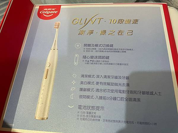 這次所介紹的高露潔GLINT十段式護齦聲波電動牙刷,是他們2022年的新產品,最大的特點就是標榜有著十段變速,可依據使用者的自身感受做最適化的調整。