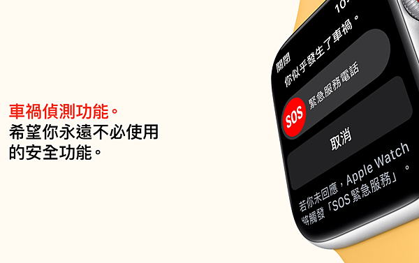 近年國人發生獨自在家跌倒、猝死的新聞屢見不鮮,Apple watch 也因應推出了跌倒偵測的功能,若是手錶偵測到配戴者有嚴重傾倒的狀態,便會發出警示聲,且會越響越大聲,讓身邊的人有辦法注意到你;假設是獨居者,在過了約莫10分鐘沒有反應後,手錶便會撥打緊急服務電話,來尋求急救單位協助。