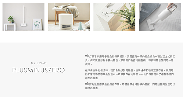同時從官網的各產品介紹,就可以知道「正負零±0」他們家的產品都蠻簡約的,不管是設計還是配色。