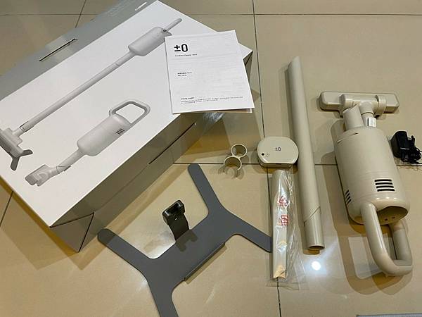 打開包裝後,所有的配件還挺多的,包含吸塵器主體、吸頭、支架、電池、充電線等,看似很多很複雜,但全部組裝起來就是卻意外的簡約。加上顏色簡單,完全無違和的融入家中,變成家中擺設一部份完全不是問題!