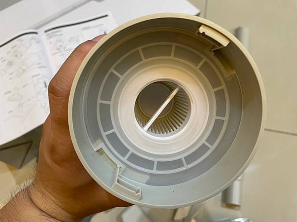 再來細看到吸塵器的各部分,大致分為握把(馬達)、主體(濾心)、吸頭三個部分,沒有多餘的結構,組裝起來乾淨俐落、簡簡單單。