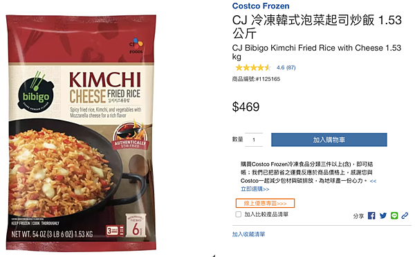 同樣為韓國產地直送的這款冷凍韓式泡菜起司炒飯,也是這陣子好市多的必買新寵兒,許多人去好市多總會帶一包走,主打採用韓國道地的泡菜,加入紅椒、洋蔥、胡蘿蔔、青蔥等食材,更有大量莫札瑞拉起司做搭配,吃起來滿滿起司與泡菜味,真的有夠爽的!平常要吃到這樣的料理,沒有個半小時一小時絕不可能達成,這款產品只需要微波3分鐘或者鍋炒3分鐘就可食用,完全只有方便兩字足以形容它的強大,直接深得不太會煮菜的我的心啊。