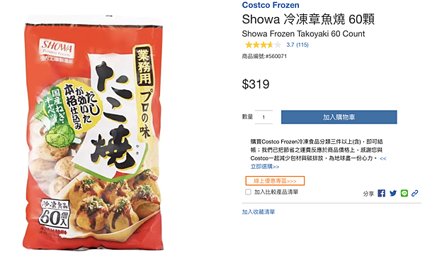 有人跟我一樣,每次只要在夜市看到章魚燒,都會有想要吃的衝動嗎?但平常要自己做章魚燒並不是這麼容易,不僅市面上現成的產品不多,加上料理需要用另外的器具,常常就因為這樣打退堂鼓了XD。而好市多的這款冷凍章魚燒正好能夠滿足喜愛章魚燒的人,它主打現成只要微波加熱三分鐘即可食,因此受到許多人青睞和推薦,短時間快速料理後,想要更添風味的話,加上美乃滋跟柴魚片,就能吃到幾乎跟夜市一模一樣的章魚燒了!