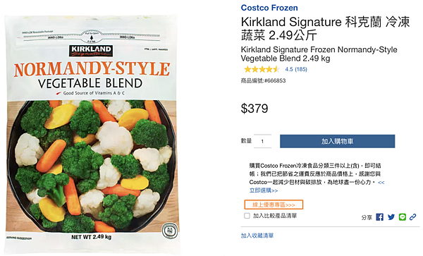 6. 科克蘭 冷凍蔬菜 NT$ 379