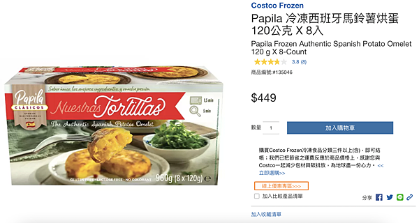 作為西班牙的國民料理之一,這道料理在台灣不常見,但因為太特別了,很難不讓人注意到它,可當正餐也可當點心,以雞蛋、炸馬鈴薯、洋蔥三種食材做基底,搭配特製調味料,吃起來很有異國風味XD。其料理方式多元,不管是微波爐、烤箱、平底鍋都可以調理,且解凍前與解凍後的調理方式有所不同,以微波爐未解凍的狀態加熱,也僅需要以800W加熱1.5分鐘即可,若是解凍後更只需要1分鐘就可食用,完全就是五分鐘出好菜的等級,不入手感覺說不過去阿哈哈。