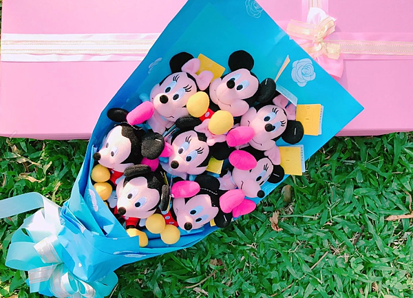如果你仍然說服不了自己送花,那麼這個也能考慮,大多女生應該都喜歡娃娃,這個用娃娃堆成的花束,感覺就超級卡哇伊的,款式也相當多,其中米奇米妮、卡娜赫拉、史迪奇、小小兵都在裡面買的到,如果自己的另一半剛好喜歡娃娃,就給它拜下去吧!